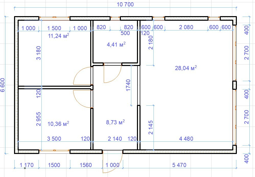 Обшивка внутри : гипсокартон b = 12 мм