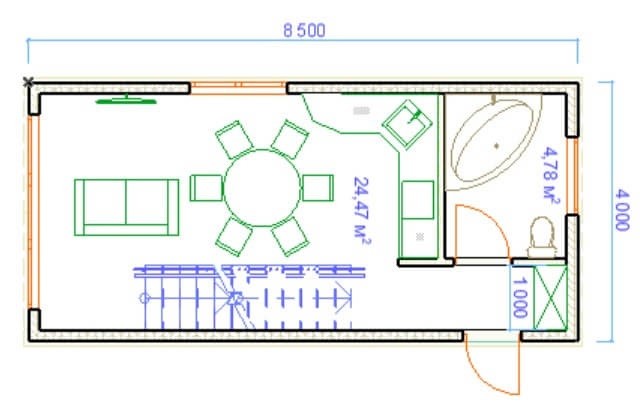 Обшивка внутри : гипсокартон b = 12.5 мм